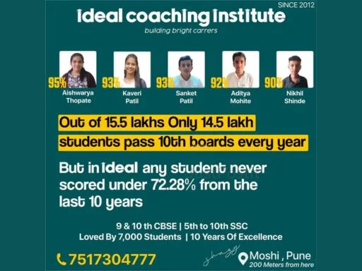 The excellence in education with Ideal Coaching Institute. We specialize in 7th, 8th, 9th, and 10th-grade curricula for CBSE and State Board students, offering tailored support in Science and Commerce streams. Prepare for success with our comprehensive foundation programs for NEET, JEE, and MHT-CET exams. Our experienced educators ensure holistic development, empowering students to excel academically and beyond. Join us and unlock your potential for a brighter future.
